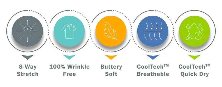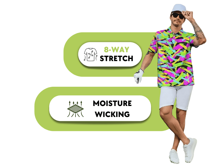 Our 8-way Flexbend stretch fabric moves with you, ensuring full mobility on every swing. Plus, moisture-wicking technology keeps you cool and dry, so you stay fresh from tee-off to the final putt.